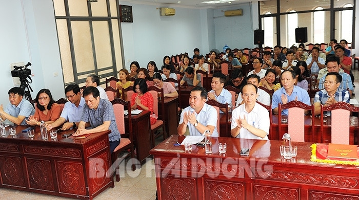 Các đại biểu, cán bộ, phóng viên, người lao động Báo Hải Dương dự lễ công bố.