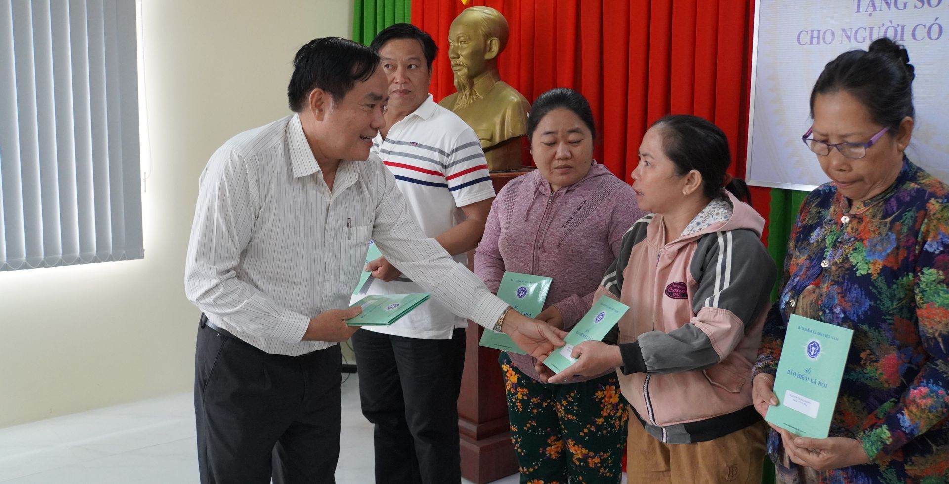 Ông Lê Tiến Lợi- Phó Giám đốc BHXH tỉnh Tây Ninh trao tặng sổ BHXH tự nguyện cho người dân.