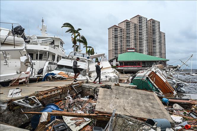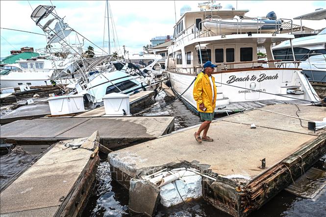 Cảnh đổ nát tại một bến tàu sau khi bão Ian đổ bộ, tại Fort Myers, bang Florida, Mỹ ngày 29/9/2022. Ảnh: AFP/TTXVN