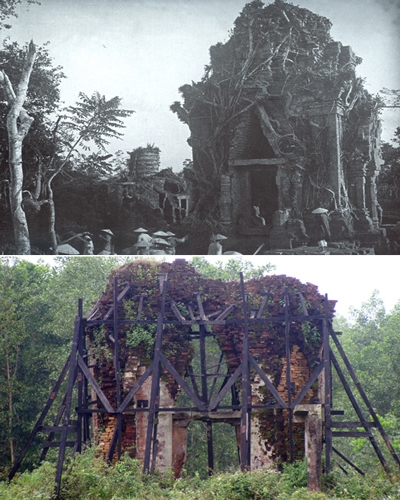 Làng Đồng Dương nơi tìm ra pho tượng vốn là Phật viện lớn nhất của người Chăm xưa. Khu vực này hiện xuống cấp nghiêm trọng do sự tàn phá của chiến tranh và cả con người.