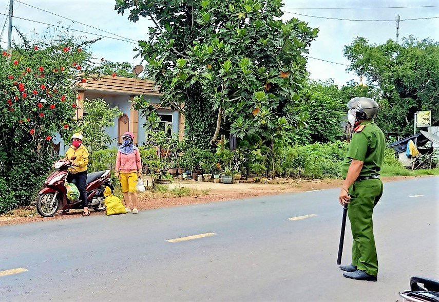 Công an xã Bến Củi kiểm tra, nhắc nhở người dân chỉ ra đường khi thật sự cần thiết.