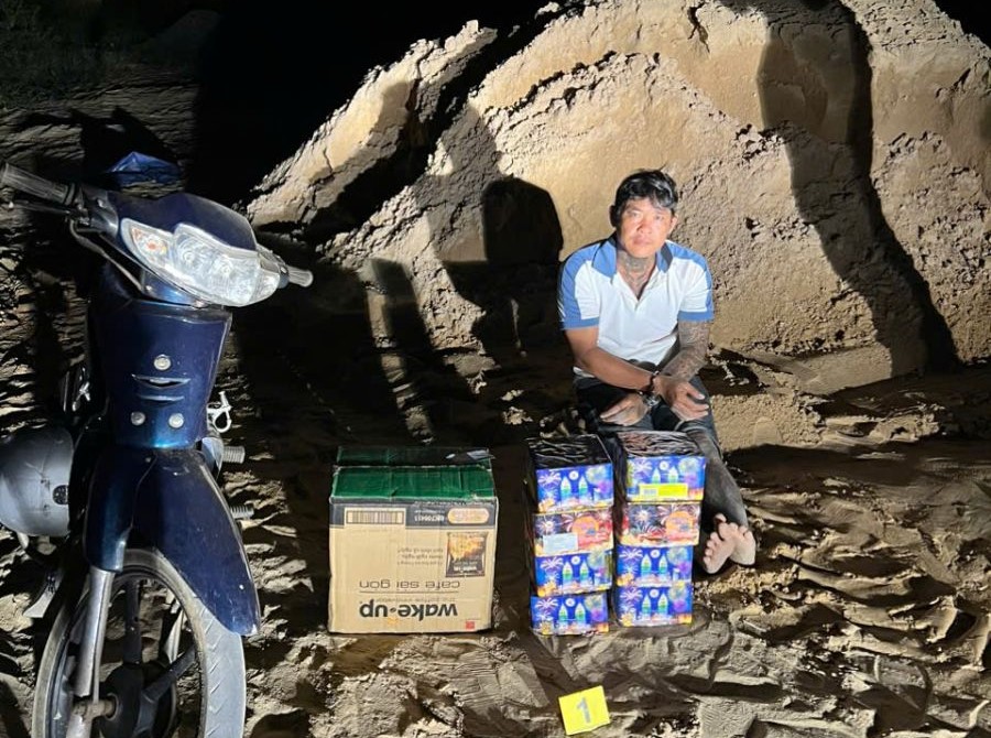 Qua kiểm tra, Công an phát hiện bên trong thùng giấy carton có chứa 8 hộp pháo hoa nổ, có trọng lượng khoảng 13 kg nên tiến hành lập biên bản bắt người và thu giữ tang vật gồm: 8 hộp pháo hoa nổ; 1 xe mô tô không biển số.