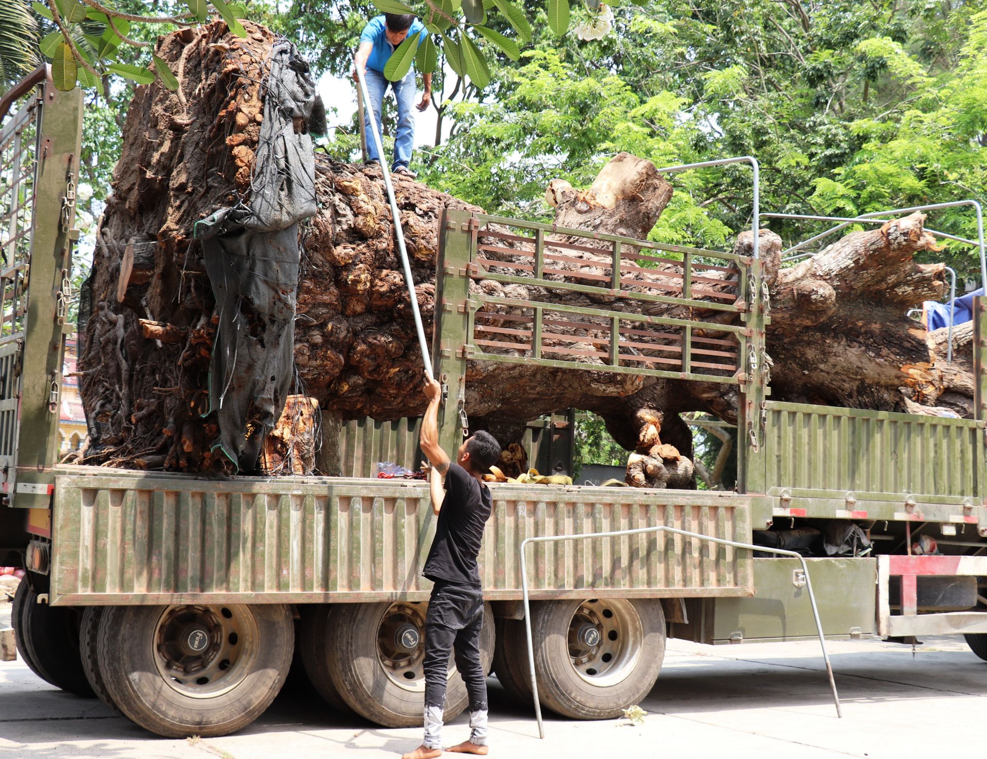 Tài xế chiếc xe đầu kéo chở cây xoài cổ thụ là anh Quách Hoàng Nghĩa (sinh 1989, ngụ Cù Lao Dung, tỉnh Sóc Trăng) khai rằng, khi xe của anh đang ở khu vực Thành phố Tây Ninh (tỉnh Tây Ninh), thì có một người tên Năm điện thoại đến khu vực xã Hòa Hiệp để chở cây xoài cổ thụ về tỉnh Bến Tre cho khách với giá 15 triệu đồng, anh Nghĩa đồng ý chở, khi đang lưu thông trên đường thì bị cơ quan chức năng bắt giữ.