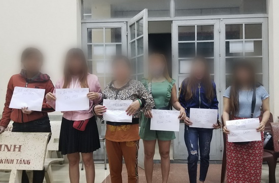 Các đối tượng bán dâm tại cơ quan công an.