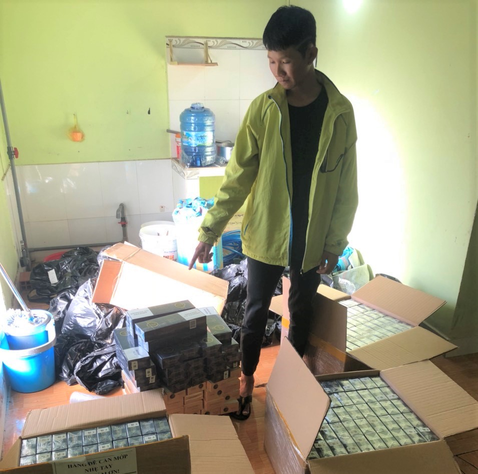 Đến ngày 27.6, khi lực lượng công an tiến hành kiểm tra, bắt quả tang Thuận đang tàng trữ 2.990 gói thuốc lá ngoại nhãn hiệu 555 không hoá đơn, chứng từ.
