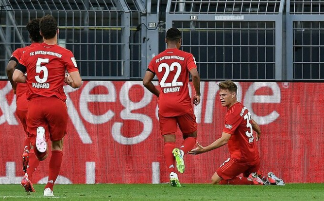 Siêu phẩm của tiền vệ Joshua Kimmich giúp Bayern đánh bại chủ nhà Dortmund 1-0, ở trận sớm nhất vòng 28 Bundesliga, tối 26/5.