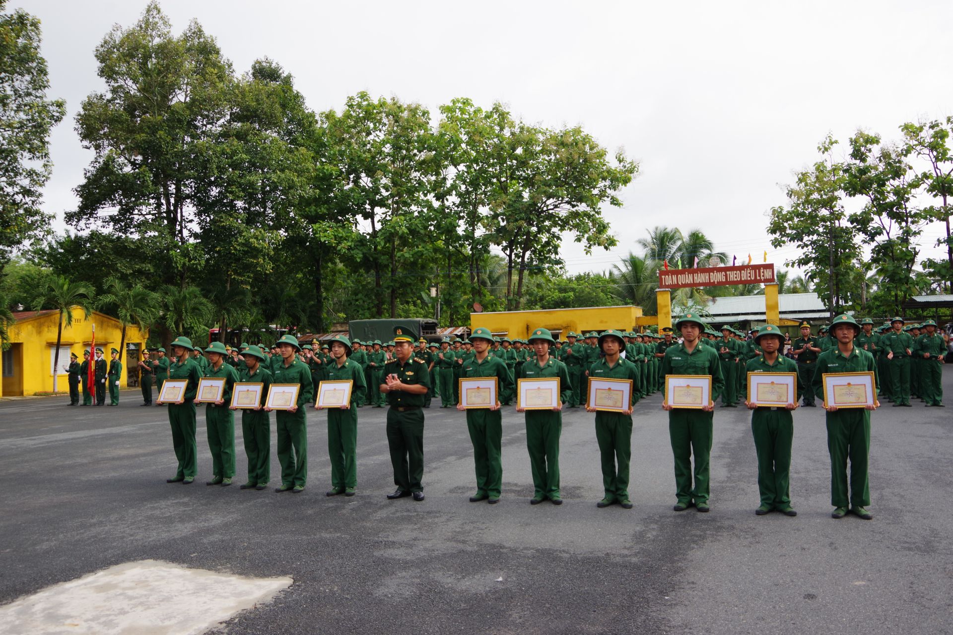 Thượng tá Trương Thành Tiến- Phó Chỉ huy trưởng, Tham mưu trưởng BĐBP tỉnh Tiền Giang trao giấy khen cho cán bộ có thành tích xuất sắc trong huấn luyện chiến sĩ mới năm 2023.
