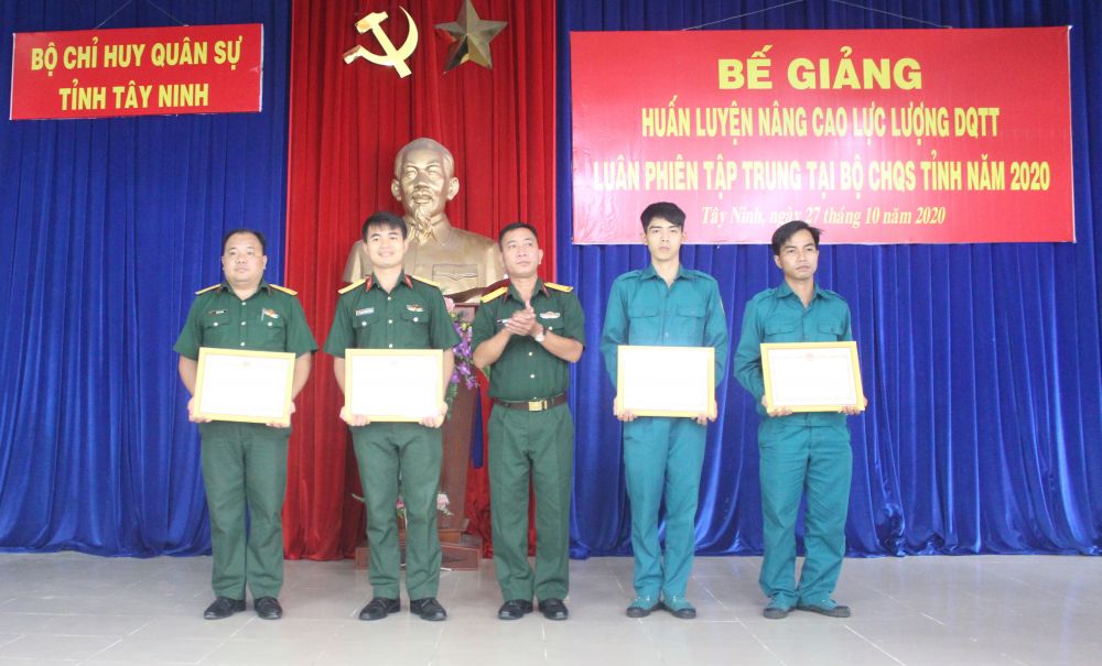 Tại buổi bế giảng, Bộ CHQS tỉnh biểu dương khen thưởng cho 4 tập thể và 18 cá nhân có thành tích tiêu biểu xuất sắc trong tham gia huấn luyện.