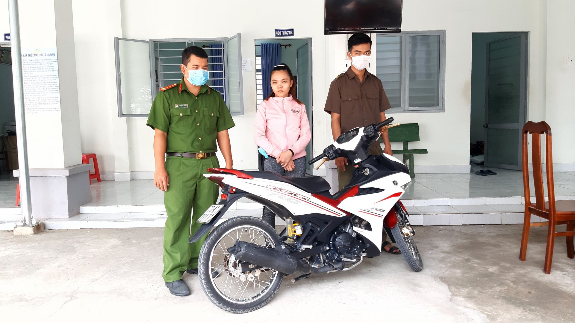 Nhi và chiếc xe khai báo giả bị mất.