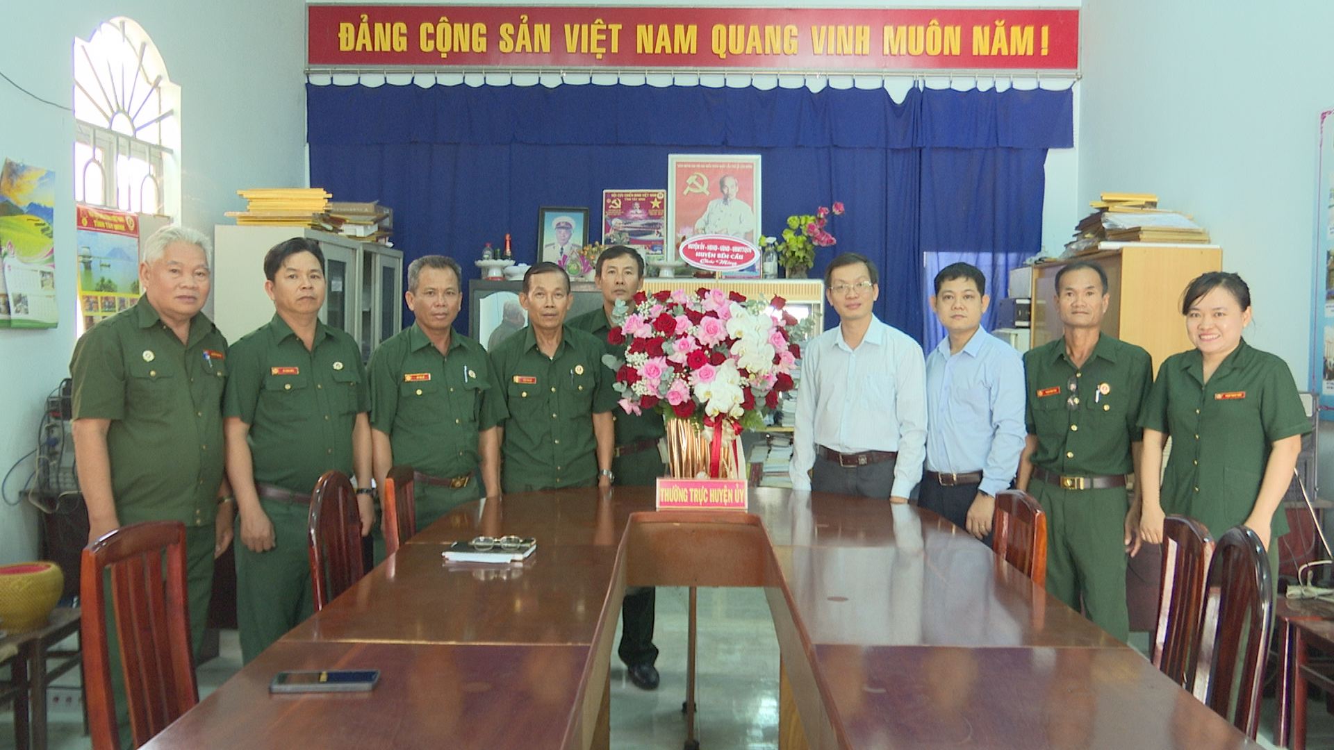 Thường trực Huyện uỷ tặng hoa chúc mừng Hội Cựu chiến binh Việt Nam huyện Bến Cầu.