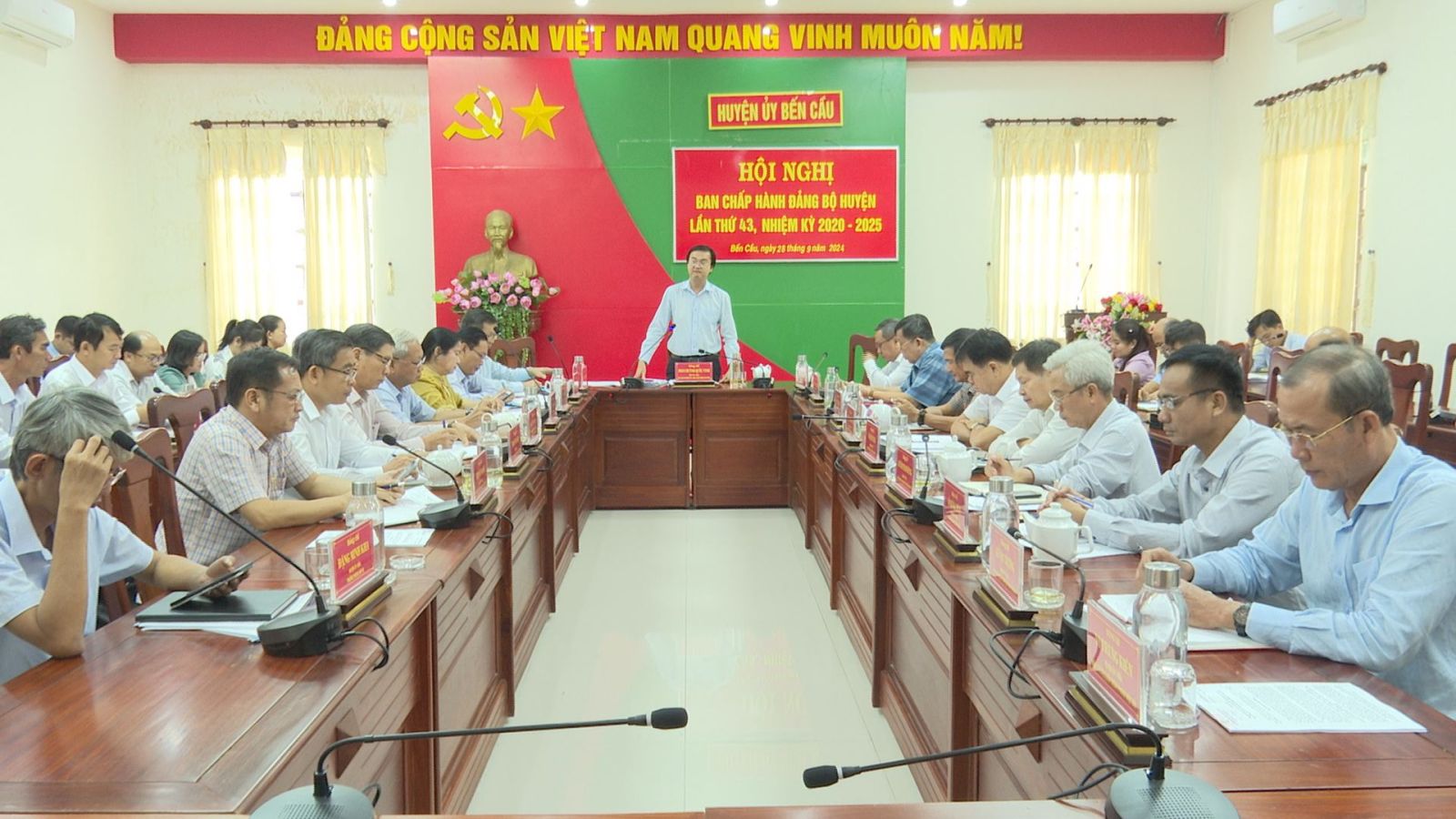 Chiều 28/11, Ban Chấp hành Đảng bộ huyện Bến Cầu tổ chức Hội nghị lần thứ 43 nhằm đánh giá kết quả thực hiện nhiệm vụ năm 2024, triển khai phương hướng, nhiệm vụ năm 2025. Ông Phan Huỳnh Quốc Vinh - Bí thư Huyện ủy, Chủ tịch HĐND huyện chủ trì hội nghị.
