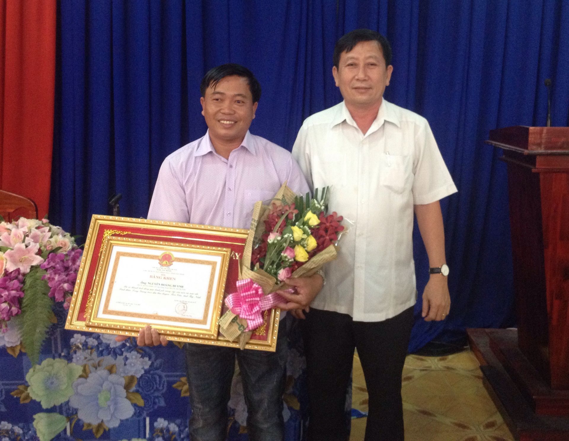 Ông Phan Văn Hòa- Phó Chủ tịch UBND huyện Bến Cầu trao bằng khen của Chủ tịch UBND tỉnh cho ông Nguyễn Hoàng Huynh.