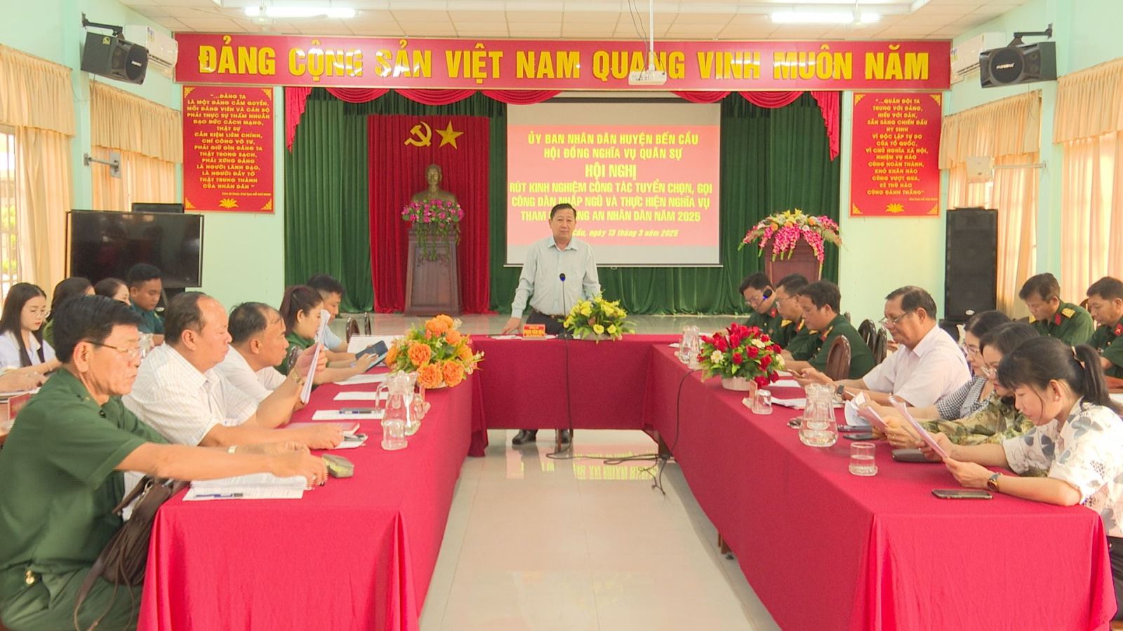 Sáng 13.3, Hội đồng nghĩa vụ quân sự huyện Bến Cầu tổ chức hội nghị rút kinh nghiệm công tác tuyển chọn, gọi công dân nhập ngũ và thực hiện nghĩa vụ tham gia Công an nhân dân năm 2025.