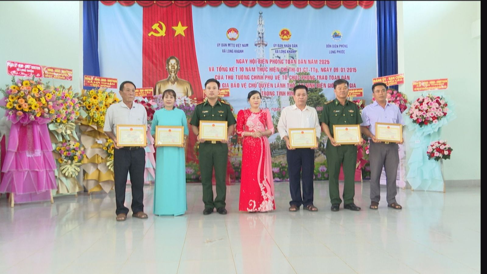 Dịp này, UBND huyện Bến Cầu khen thưởng cho 5 tập thể và 7 cá nhân có thành tích xuất sắc trong 10 năm thực hiện Chỉ thị số 01; UBND xã Long Khánh khen thưởng cho 2 tập thể và 6 cá nhân có thành tích trong Ngày hội Biên phòng toàn dân năm 2025.