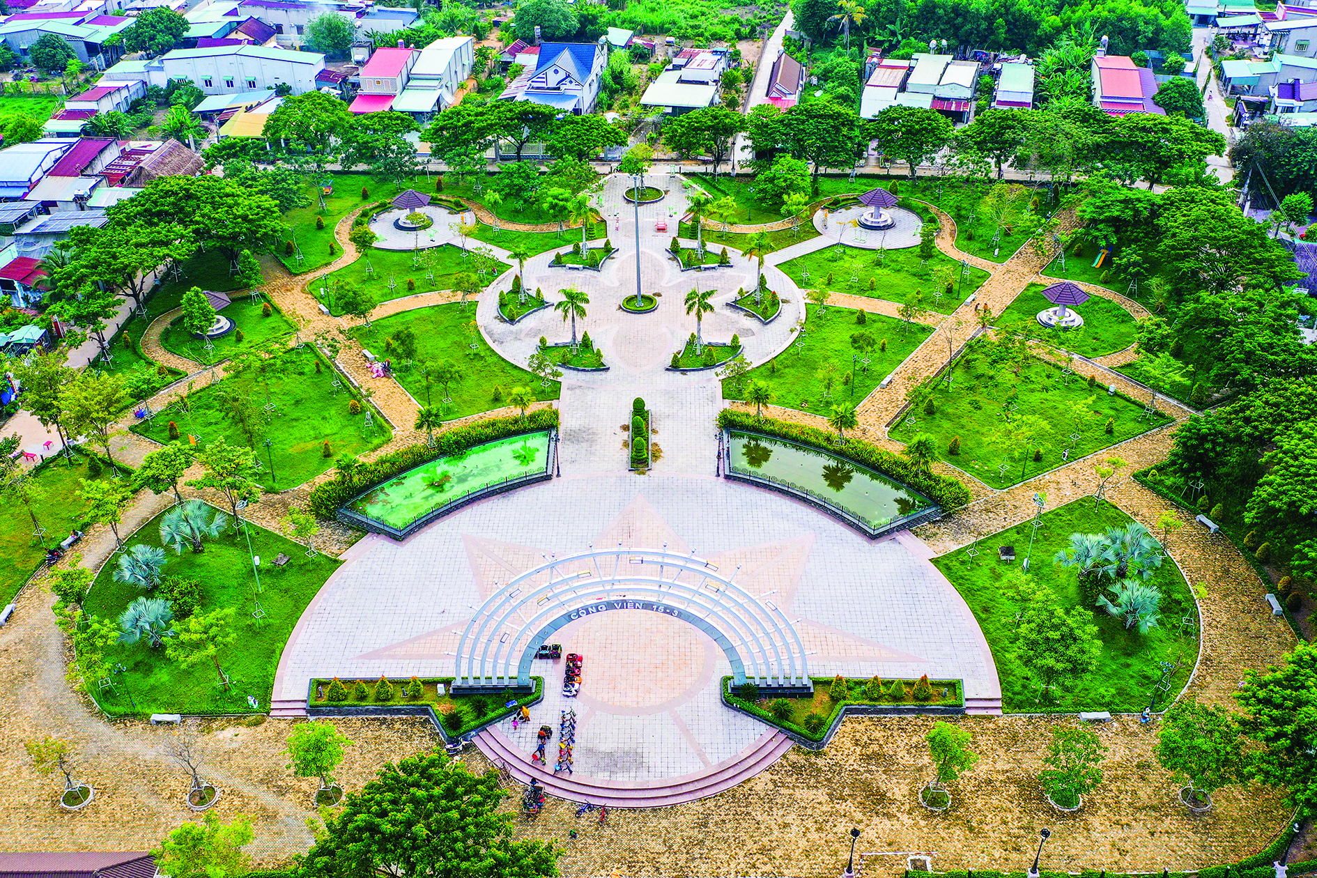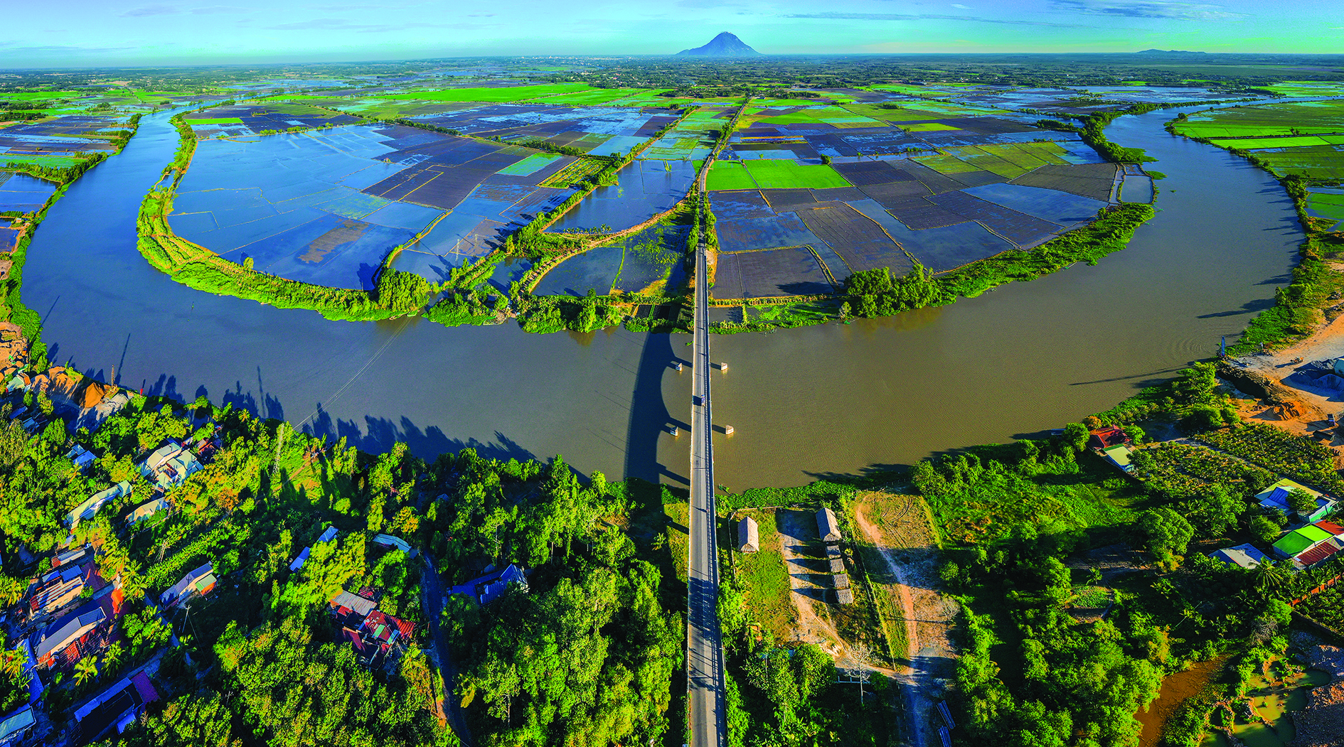 Một góc nhìn huyện Bến Cầu từ trên cao cho thấy vẻ đẹp mới, màu sắc đầy tươi sáng cho sự phát triển trong tương lai.