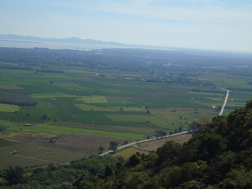 Vòng qua đường phía đông núi qua xã Phan, bạn sẽ gặp những ruộng mía, bờ lau mùa đông bạt ngàn hoa trắng. Dĩ nhiên cũng gặp những vườn mãng cầu đang hớn hở đón những làn mưa nhân tạo từ các vòi phun. Núi bên này y như đầu một ông voi đang phủ phục, vòi voi vươn dài về phía đông nam. Người ta đã chọn tuyến cáp treo trên chính chiếc vòi voi ấy. Để khách gần xa dễ dàng lên lạy Phật, cúng Bà.