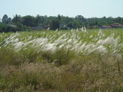 Dẫu khó, nhưng cũng nên leo phía núi bên kia một lần cho biết. Chỉ từ lưng núi mà lên, ngoái lại đã thấy cánh đồng Khe Đon vàng rực dưới tầm nhìn. Ôi chà! Như một cánh diều đang sải cánh bay về phía đằng tây. Hai cánh diều ấy sải rộng ra hai bên thân diều là trục đường Khe Đon- Suối Đá. Đầu diều là xóm dân cư, nổi bật sắc đỏ vàng của mái chùa Khmer, như một búp sen giữa cánh đồng vàng. Dưới chân núi người dân đã tự tạo những cái hồ chứa nước, chắc là cho những mùa vụ trong mùa khô, như những tấm gương trời cho mây.