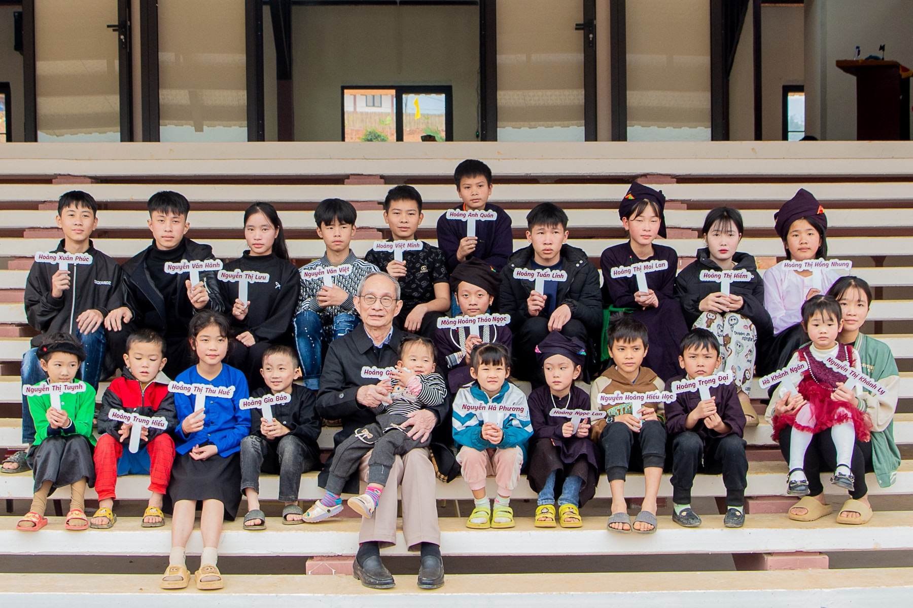 Chuyến đi này của thầy Khang cũng mang theo một tâm nguyện là gặp mặt các cháu và 23 ông cháu cùng nhau ký lời hẹn ước 15 năm: “Ông giữ gìn sức khỏe/Cháu chăm chỉ học hành”.