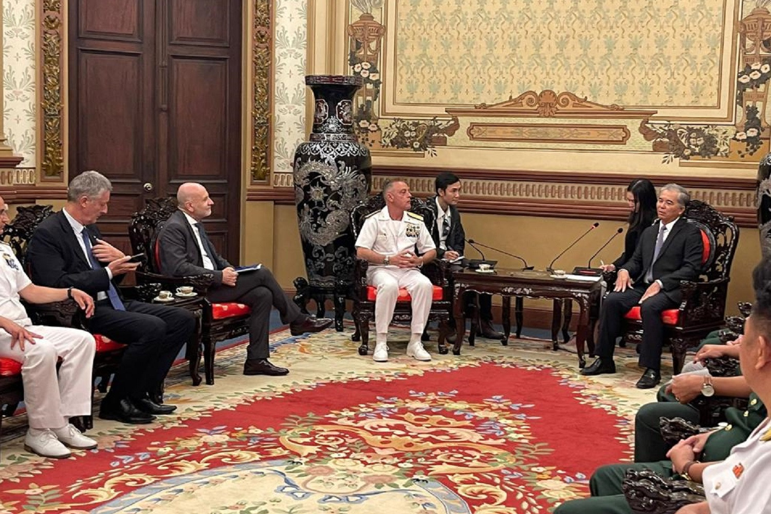 Chỉ huy tàu Francesco Morosini gặp gỡ các quan chức thành phố HCM ngày 10/5. Ảnh: Đại sứ quán Italia tại Việt Nam