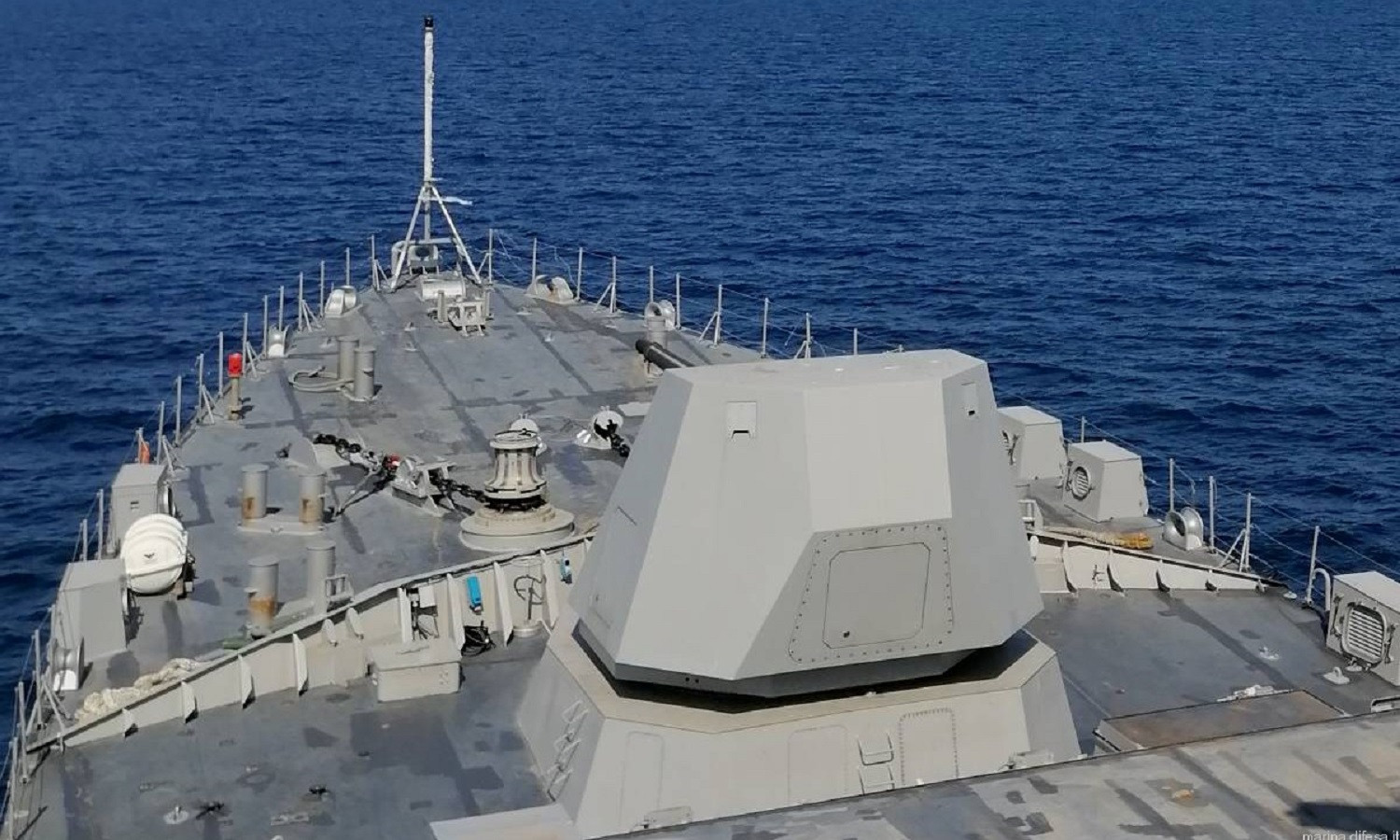 Pháo Oto Melara 127/64 nằm gần mũi tàu Francesco Morosini. Ảnh: Seaforces.org