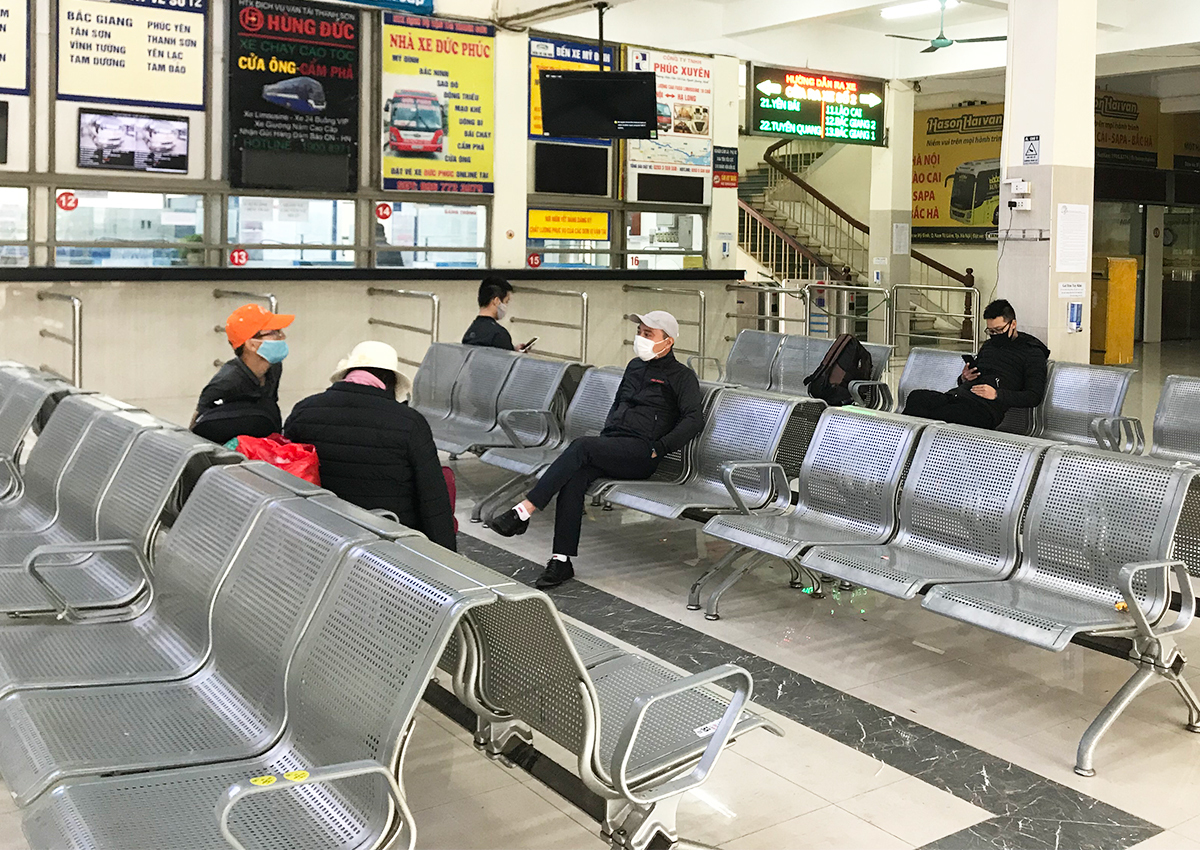 Ông Lý Trường Sơn, Giám đốc Bến xe cho hay, buổi sáng chỉ có 3 xe khởi hành đi Lập Thạch (Vĩnh Phúc), Việt Trì (Phú Thọ) và Hòa Bình. Mỗi xe có vài ba khách. Lượng khách đến bến đã giảm khoảng 90-95% so với thời điểm chưa dịch. Bình thường mỗi ngày bến có gần 1.000 xe khởi hành.