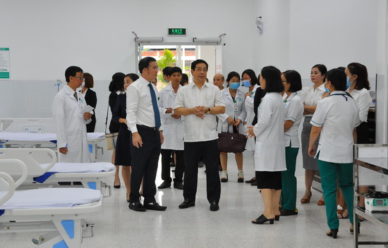 Phó Giáo sư, Tiến sĩ Lương Ngọc Khuê – Cục Trưởng Cục Quản lý khám, chữa bệnh của Bộ Y tế kiểm tra thực tế tại bệnh viện Đa khoa Hồng Hưng.