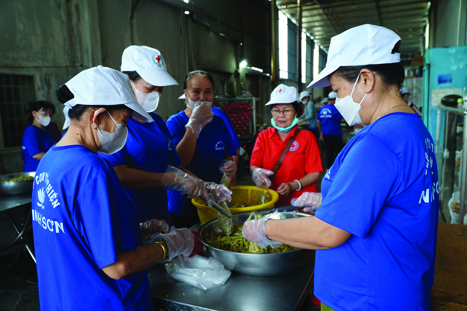 Mỗi sáng, bếp ăn từ thiện của phường Ninh Sơn (đường 30.4, khu phố Ninh An, phường Ninh Sơn, thành phố Tây Ninh) đều đỏ lửa, nấu bữa ăn ngon phục vụ những người có hoàn cảnh khó khăn, những bệnh nhân đang điều trị tại các bệnh viện. Tầm hơn 8 giờ sáng đã có nhiều người đến chờ nhận cơm. Trong bếp, mọi người vẫn đang tất bật chuẩn bị.