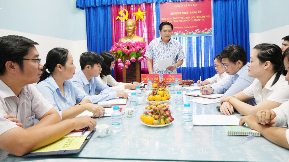 Ngày 13/11, Bí thư Đảng ủy, Chủ tịch HĐND xã Tân Tập, tỉnh Tây Ninh Trần Thanh Phong có buổi khảo sát và làm việc với Trạm Y tế xã Tân Tập nhằm nắm bắt tình hình hoạt động, cơ sở vật chất và công tác chăm sóc sức khỏe Nhân dân trên địa bàn.