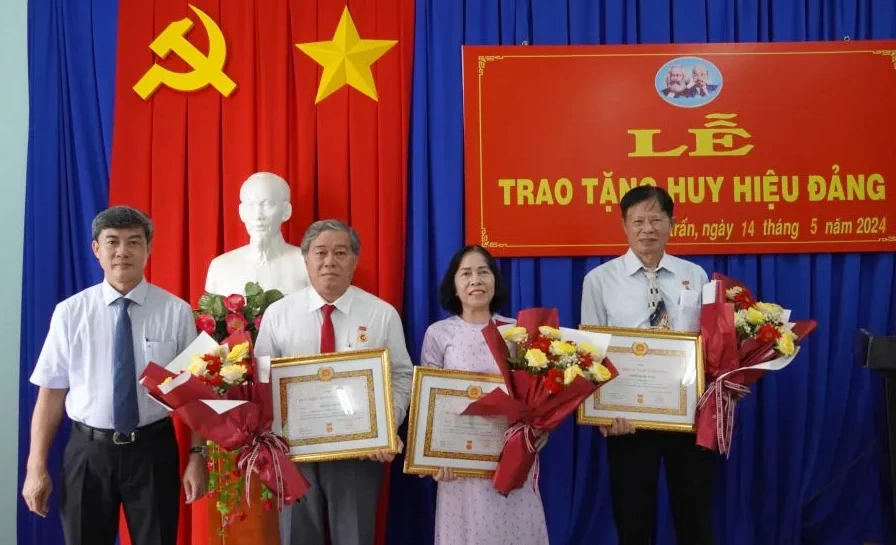 Sáng 14.5, Bí thư Huyện uỷ Châu Thành Trương Văn Hoàn đến dự và trao tặng Huy hiệu 55 và 30 năm tuổi Đảng cho 3 đảng viên tại thị trấn Châu Thành.