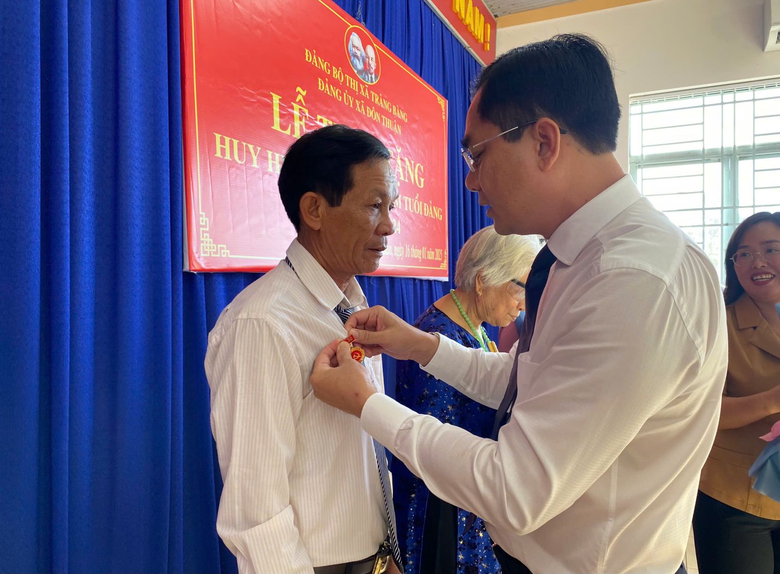 Trong đó, Huy hiệu 60 năm tuổi Đảng được trao cho đảng viên Phạm Thị Những, sinh năm 1943, hiện sinh hoạt tại chi bộ ấp Trảng Sa; đảng viên Phan Ngọc Hoanh, sinh năm 1946, sinh hoạt tại chi bộ ấp Bà Nhã.