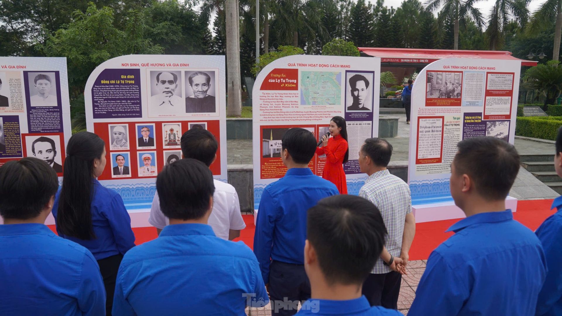 Khu tưởng niệm anh Lý Tự Trọng đã trưng bày gần 200 hình ảnh, tư liệu, hiện vật có giá trị lịch sử góp phần làm sáng tỏ thân thế, sự nghiệp, tinh thần cách mạng của người đoàn viên thanh niên cộng sản đầu tiên. Trong ảnh, đoàn công tác đến xem triển lãm ảnh "Lý Tự Trọng - Người truyền lửa".
