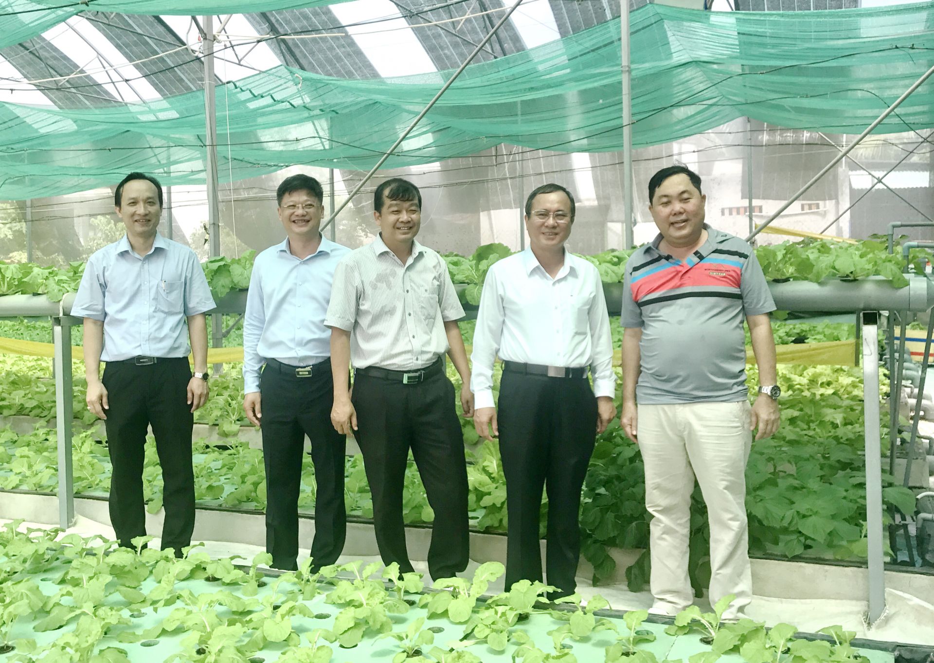 Ông Trần Văn Nam- Bí thư Tỉnh uỷ Bình Dương (thứ 2, từ phải qua) cùng lãnh đạo tỉnh Tây Ninh tham quan mô hình aquaponics.
