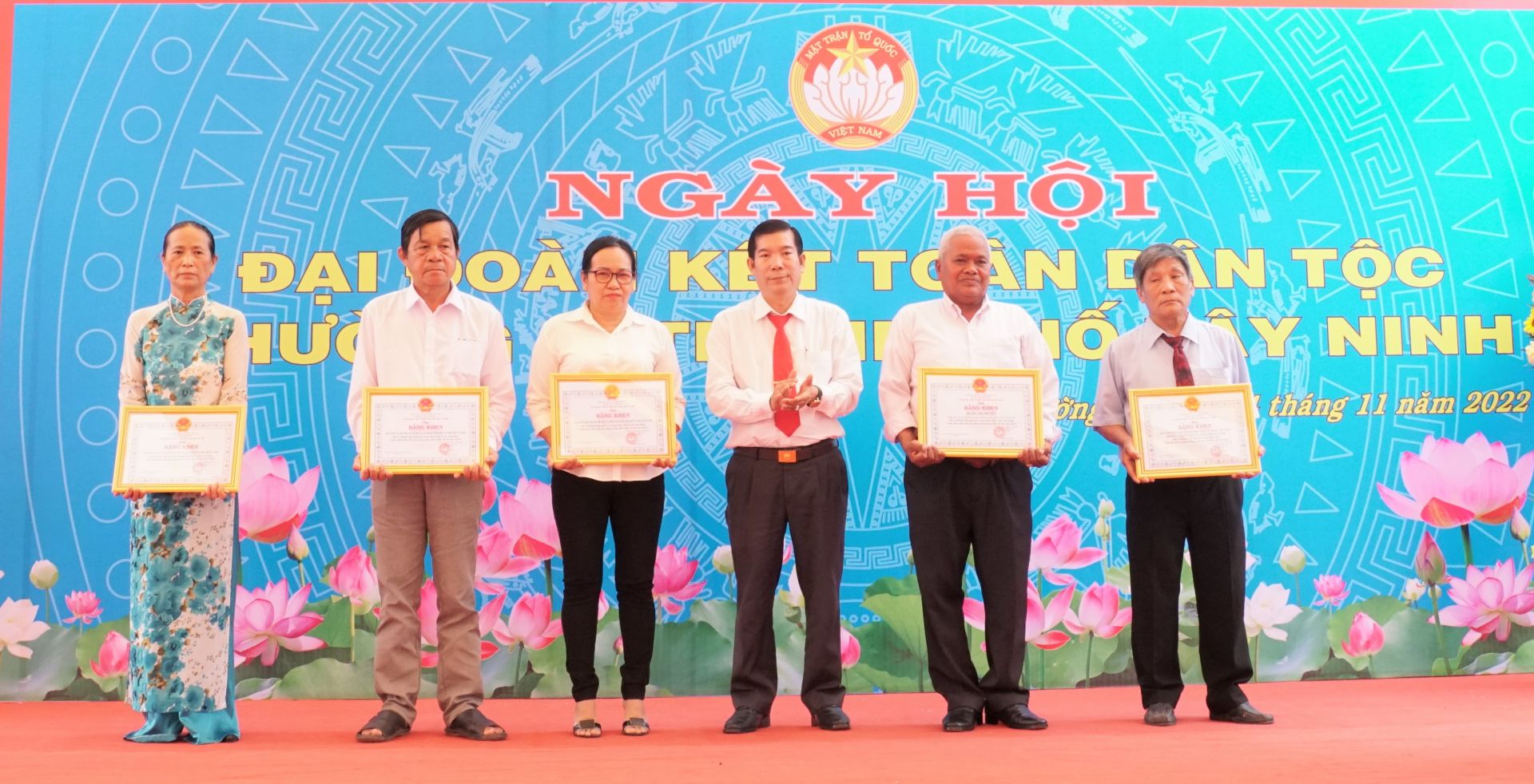 Dịp này, UBMTTQVN tỉnh tặng bằng khen cho các tập thể, cá nhân tiêu biểu trong thực hiện cuộc vận động “Toàn dân đoàn kết xây dựng nông thôn mới, đô thị văn minh” trên địa bàn thành phố Tây Ninh; UBMTTQVN phường biểu dương khen thưởng các điển hình tiêu biểu thực hiện các cuộc vận động, các phong trào thi đua yêu nước ở cộng đồng dân cư.