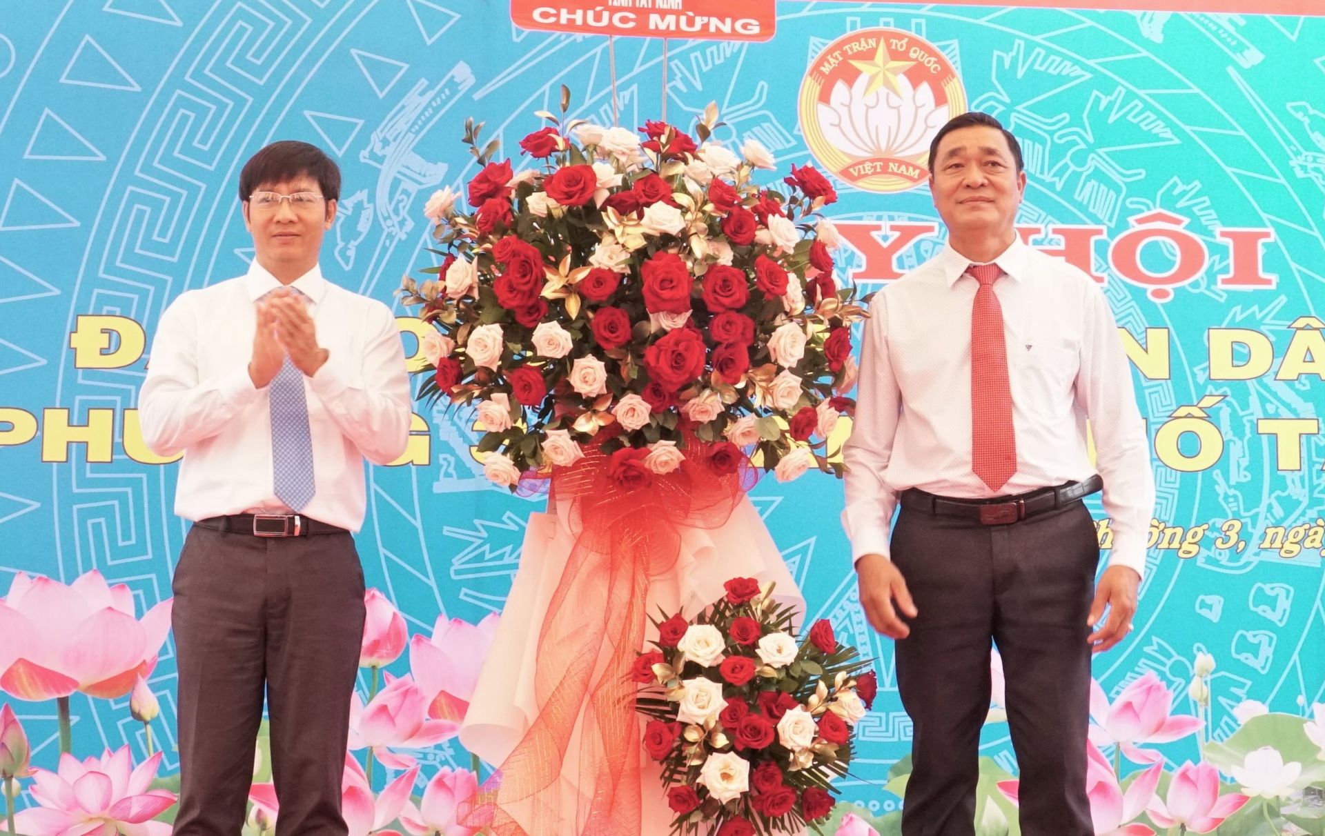 Bí thư Tỉnh uỷ, Chủ tịch HĐND tỉnh Nguyễn Thành Tâm tặng hoa chúc mừng ngày hội đại đoàn kết toàn dân tộc phường 3, thành phố Tây Ninh.