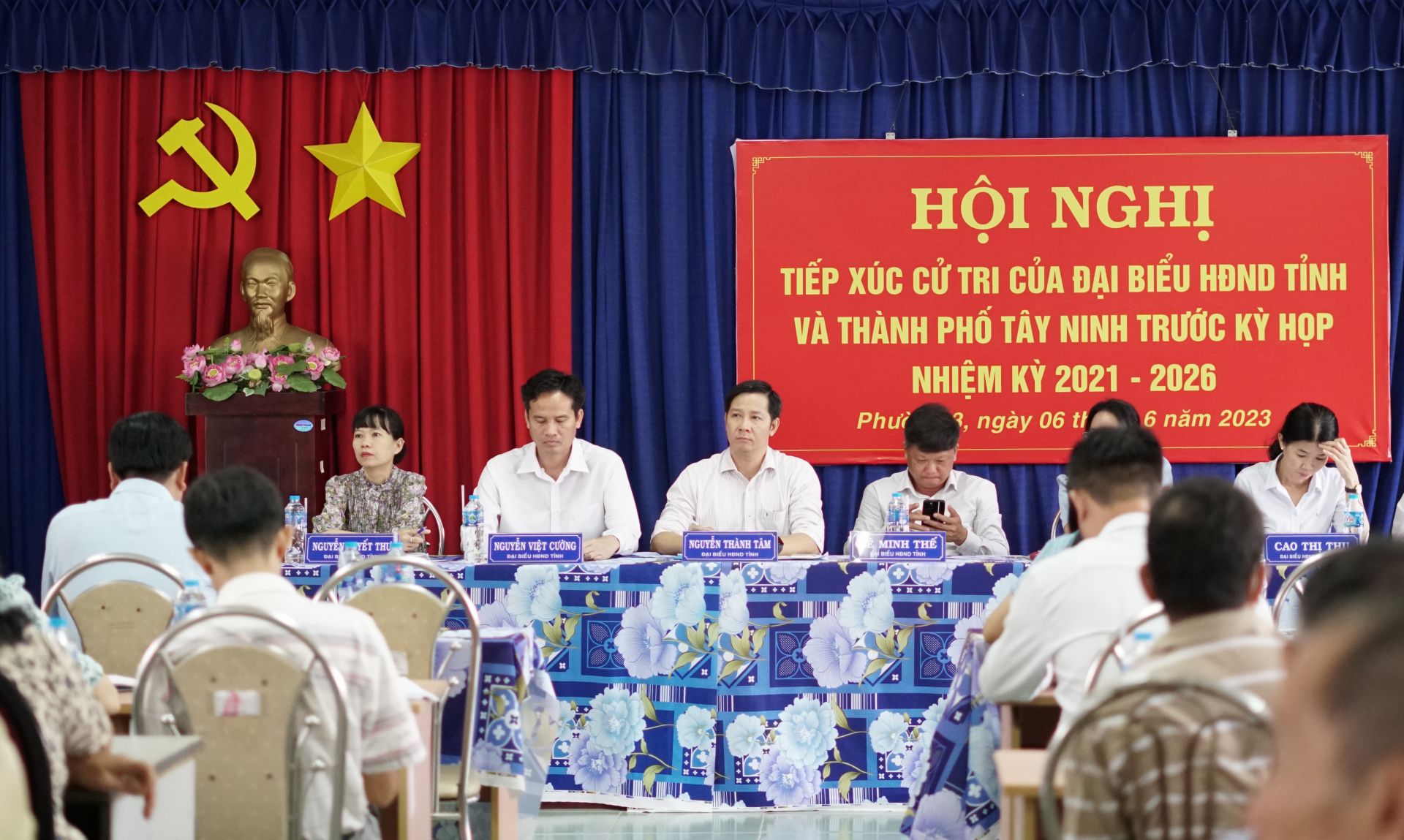 Sáng 6.6, Bí thư Tỉnh uỷ, Chủ tịch HĐND tỉnh Nguyễn Thành Tâm; Bí thư Thành uỷ Lê Minh Thế cùng các thành viên tổ đại biểu HĐND tỉnh, HĐND Thành phố tiếp xúc cử tri phường 3. Dự buổi tiếp xúc có lãnh đạo HĐND Thành phố, Uỷ ban MTTQVN Thành phố cùng hơn 40 cử tri phường 3.
