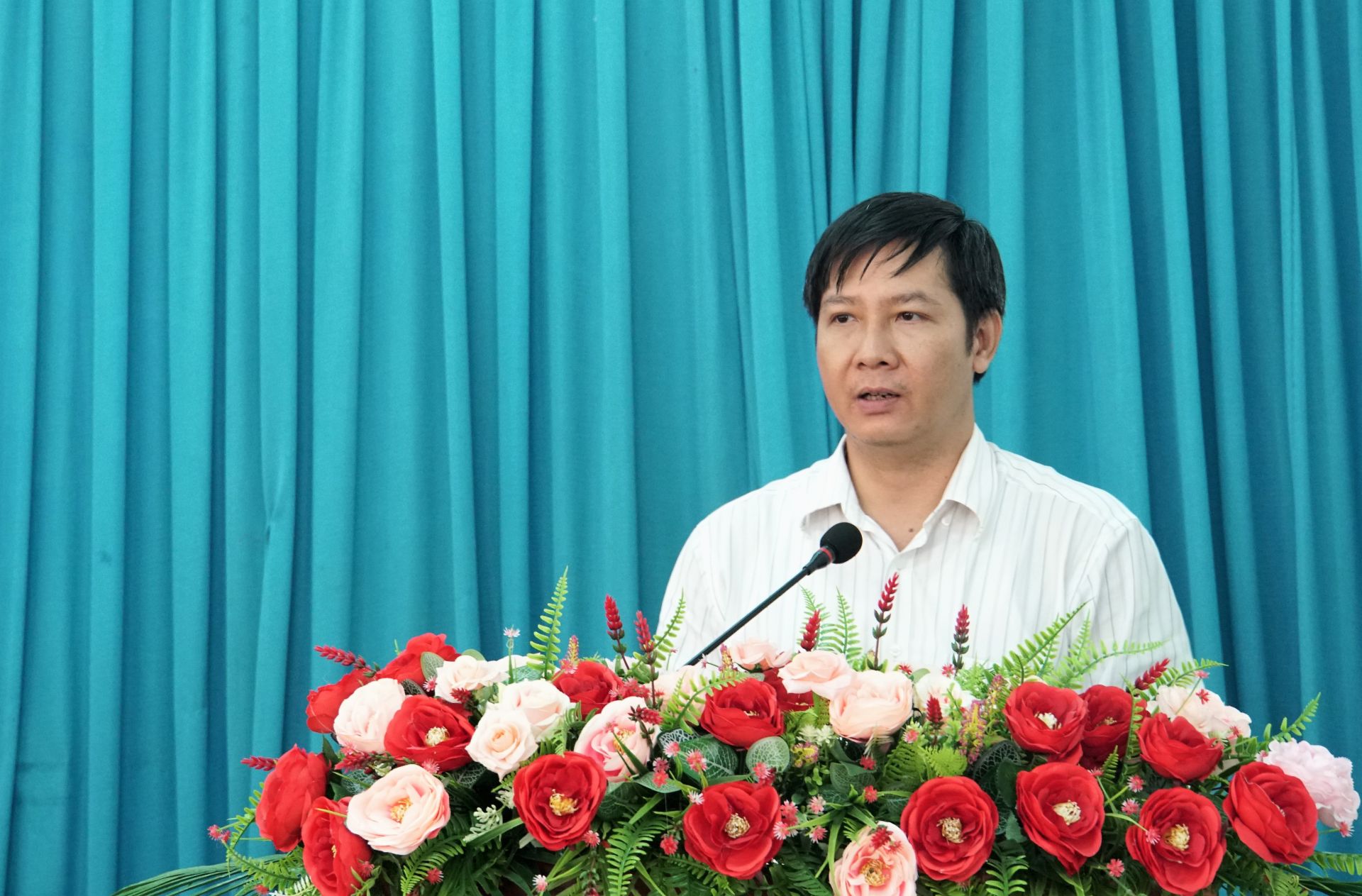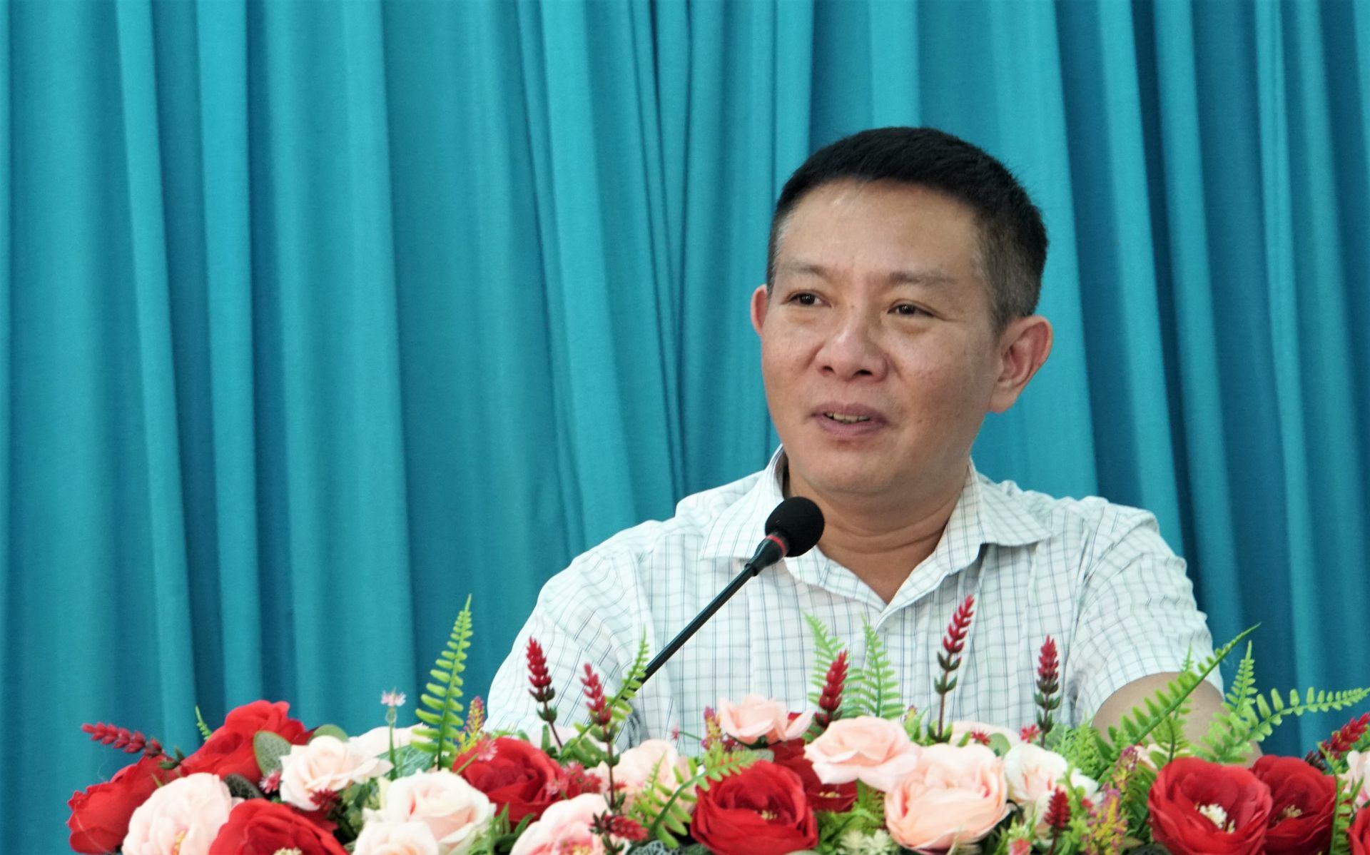 Bí thư Tỉnh uỷ, Chủ tịch HĐND tỉnh Nguyễn Thành Tâm phát biểu tại buổi tiếp xúc cử tri phường Hiệp Ninh, thành phố Tây Ninh.