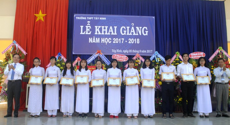 Sáng 5.9, tại trường THPT Tây Ninh, Bí thư Tỉnh uỷ Trần Lưu Quang, Giám đốc Sở GD&ĐT Mai Thị Lệ cùng đại diện một số ban, ngành trong tỉnh đã đến dự lễ khai giảng năm học mới 2017-2018.