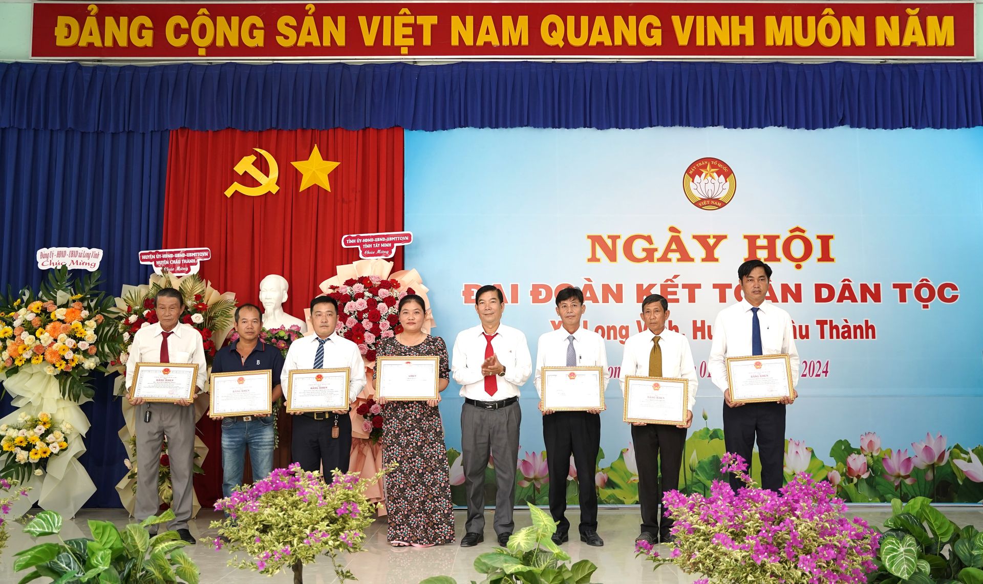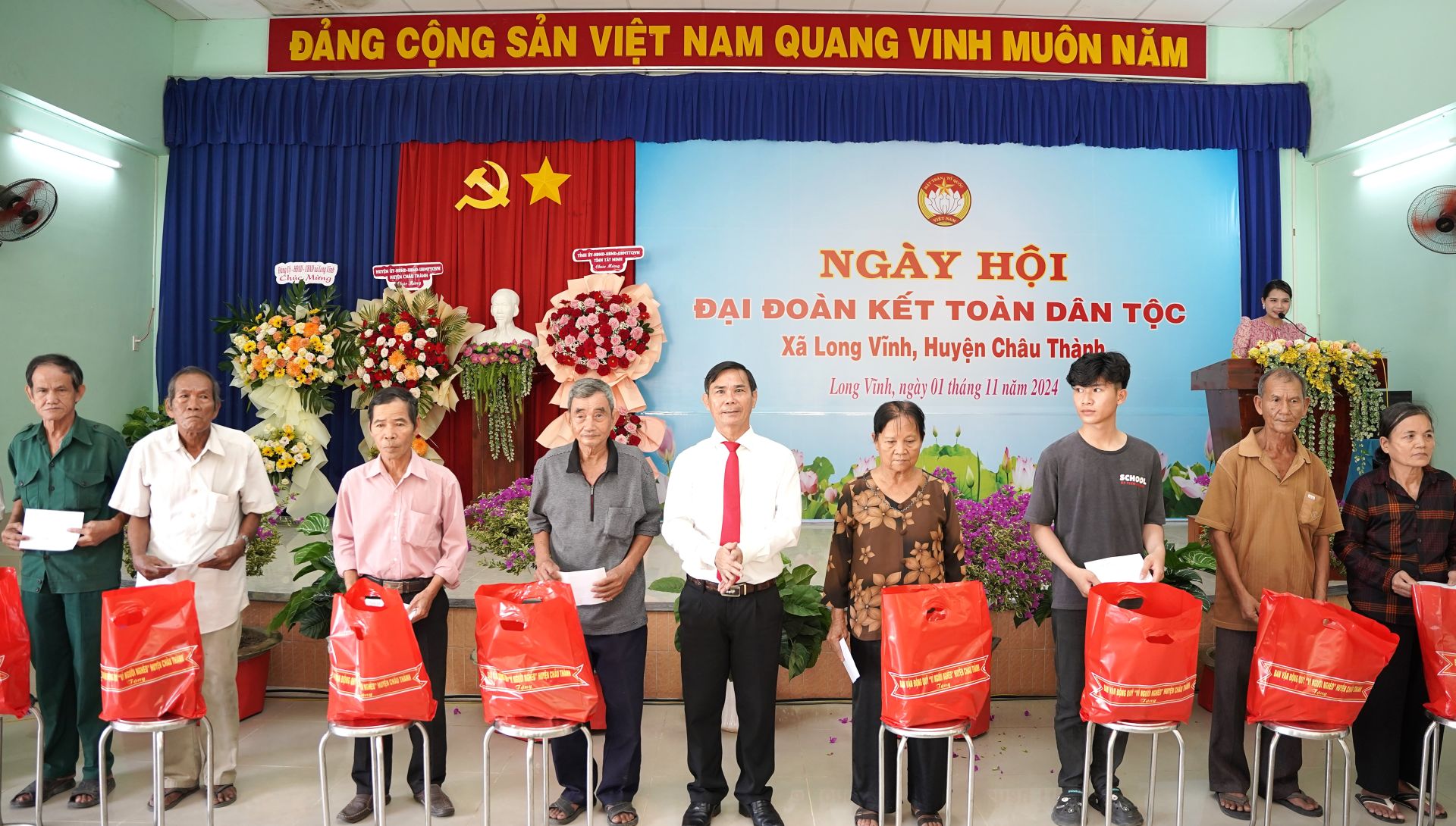 Dịp này, Bí thư Tỉnh uỷ, Chủ tịch HĐND tỉnh Nguyễn Thành Tâm và lãnh đạo huyện Châu Thành, xã Long Vĩnh trao tặng 30 phần quà cho hộ nghèo, hộ có hoàn cảnh khó khăn trên địa bàn xã Long Vĩnh. Nhiều tập thể, cá nhân có thành tích xuất sắc trong Cuộc vận động “Toàn dân đoàn kết xây dựng nông thôn mới, đô thị văn minh”, bảo vệ môi trường, ứng phó với biến đổi khí hậu được nhận Bằng khen của Ban Thường trực Uỷ ban MTTQVN tỉnh và giấy khen của UBND xã Long Vĩnh.