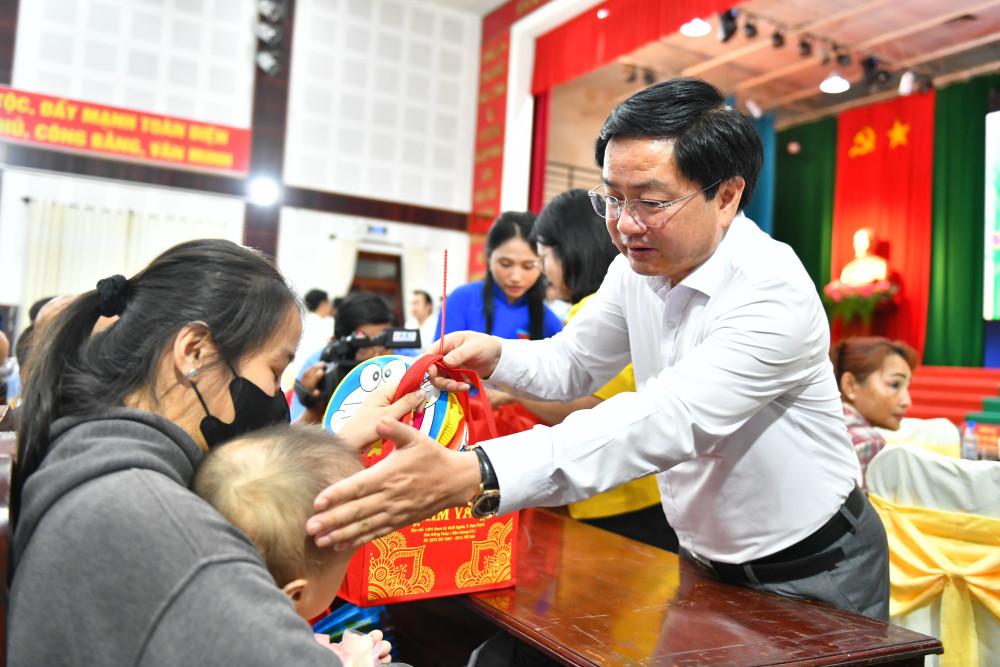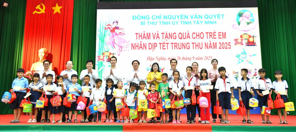 Chiều 26/9, Bí thư Tỉnh ủy Tây Ninh Nguyễn Văn Quyết tặng quà Tết Trung thu cho trẻ em có hoàn cảnh đặc biệt và trẻ em có nguy cơ rơi vào hoàn cảnh đặc biệt trên địa bàn xã Hậu Nghĩa.