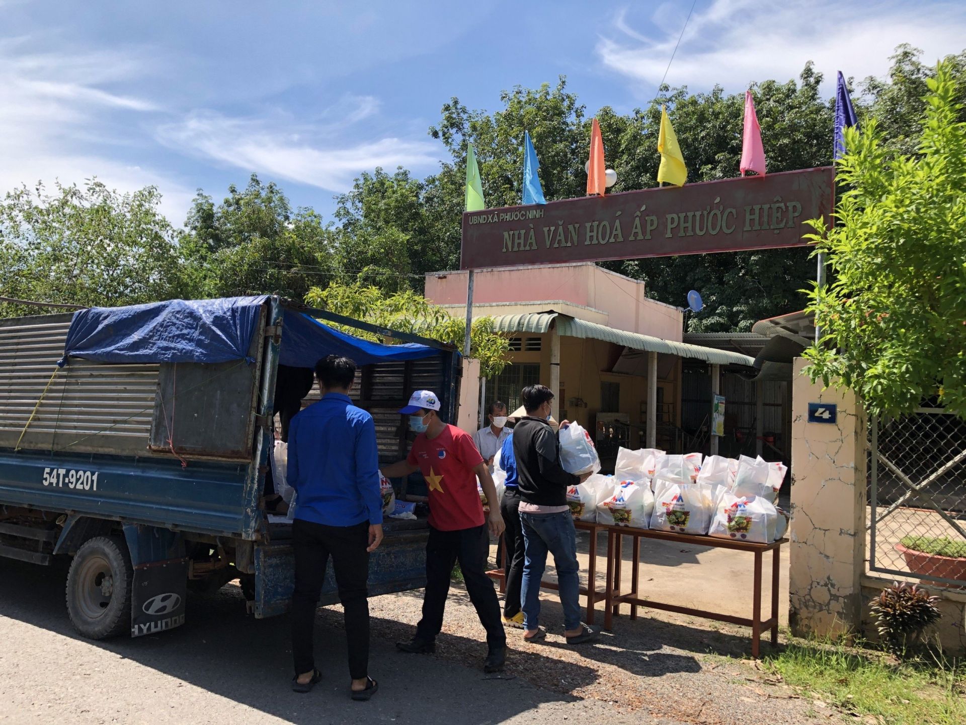 Các tình nguyện viên của CTCP Thương mại Bia Sài Gòn – Miền Đông và Hội LHTNVN tại Tỉnh Tây Ninh vận chuyển túi an sinh đến các khu vực cần hỗ trợ.
