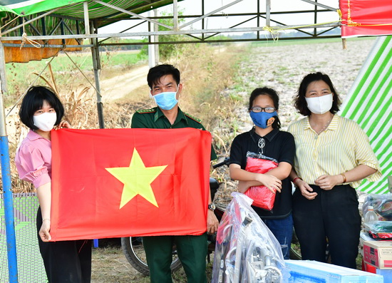 Tuổi trẻ Tây Ninh trao cờ cho điểm chốt dã chiến Đồn biên phòng Vàm Trảng Trâu.