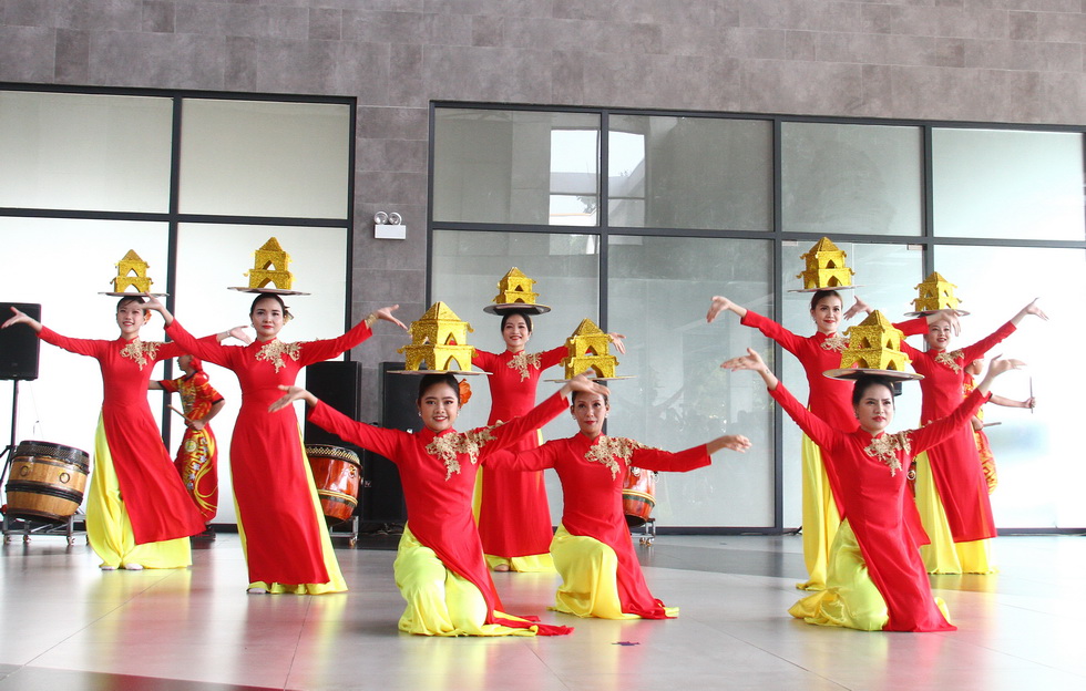 Múa mâm vàng dịp lễ vía bà Linh Sơn Thánh Mẫu tại ga Bà Đen-nhà ga cáp treo lớn nhất thế giới.