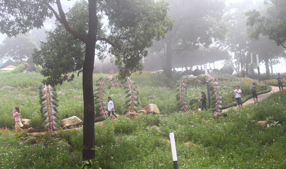 Tham quan, chụp ảnh trên đỉnh Núi Bà trong sương mờ ảo.