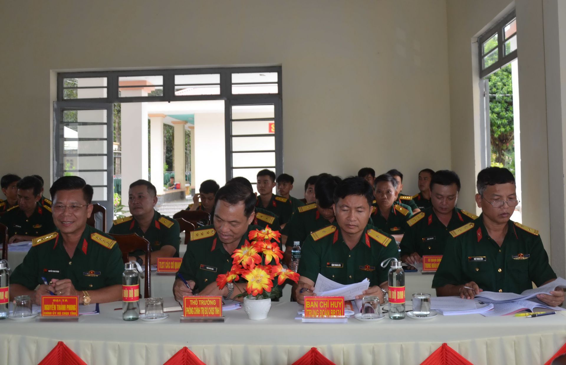 Dự và chỉ đạo hội nghị có đại tá Nguyễn Thanh Phong- Phó Bí thư Thường trực Đảng ủy Quân sự tỉnh, Chính ủy Bộ CHQS tỉnh, thượng tá Trần Văn Toàn- Phó Chủ nhiệm Chính trị Bộ CHQS tỉnh cùng đại diện các Đảng ủy: Phòng Tham mưu, Trung đoàn 174, Tiểu đoàn 14; Đảng ủy Quân sự các huyện: Tân Châu, Tân Biên, Bến Cầu và thị xã Trảng Bàng; Bí thư Chi bộ Đại đội thuộc Đảng ủy Quân sự huyện Tân Châu, Tân Biên, Bến Cầu và thị xã Trảng Bàng; Bí thư Chi bộ Đại đội trực thuộc Phòng Tham mưu, Đảng bộ Trung đoàn 174, Đại đội Kho KX5 (Phòng Kỹ thuật).