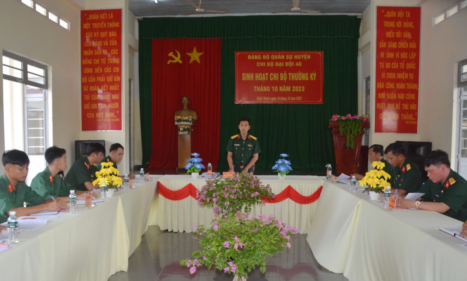 Chiều 10.10, Đảng bộ Quân sự huyện Châu Thành chọn Chi bộ Đại đội 40 tổ chức sinh hoạt Chi bộ tháng 10 để rút kinh nghiệm nhằm nâng cao chất lượng sinh hoạt chi bộ trong Đảng bộ LLVT huyện.