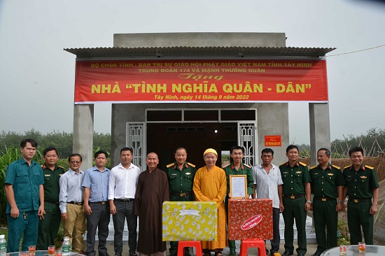 Sáng 14.9, tại ấp Bình Linh, xã Chà Là, huyện Dương Minh Châu, Bộ CHQS tỉnh, Ban Trị sự Giáo hội Phật giáo Việt Nam tỉnh Tây Ninh phối hợp cấp ủy, chính quyền xã Chà Là trao tặng nhà “tình nghĩa quân – dân” cho quân nhân Hồ Văn Hiền, chiến sĩ thuộc Trung đoàn 174, Bộ CHQS tỉnh Tây Ninh.