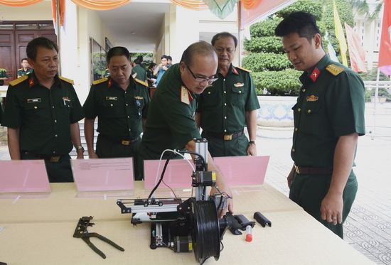 Đại biểu tham quan các sáng kiến cải tiến kỹ thuật của LLVT tỉnh.