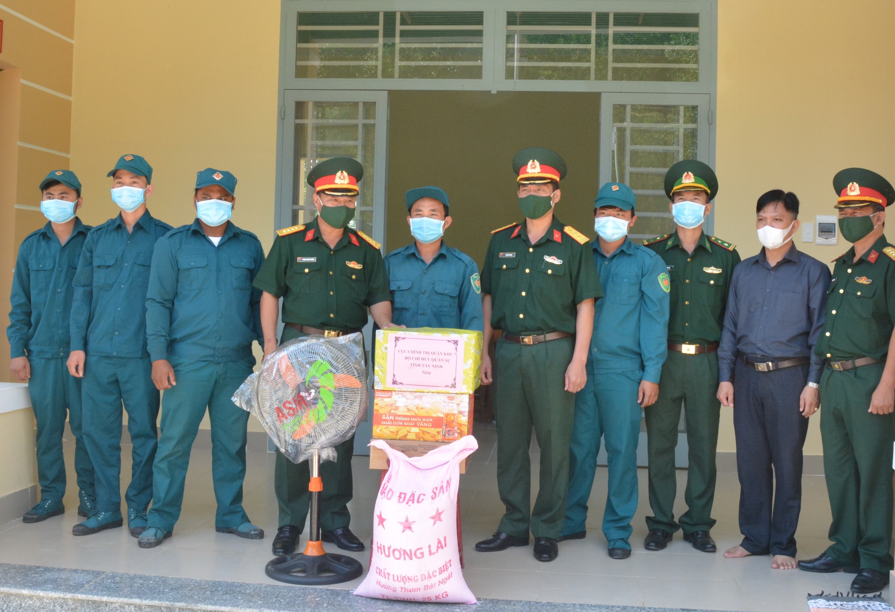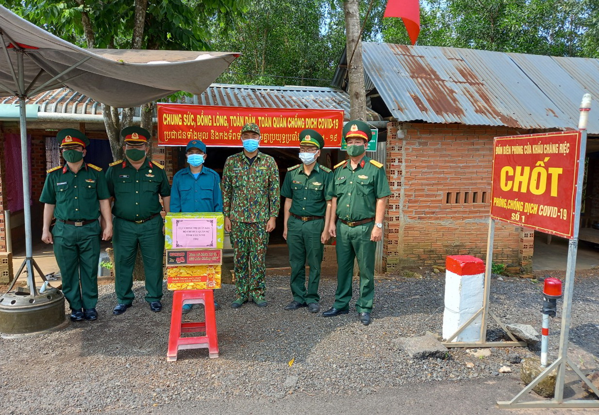 Ngày 12.7, Đại tá Đỗ Thành Việt- Phó Chính uỷ Bộ CHQS tỉnh đến thăm, tặng quà các chốt kiểm dịch trên tuyến biên giới và Đồn Biên phòng Xa Mát, Đồn Biên phòng Chàng Riệc, trên địa bàn huyện Tân Biên.