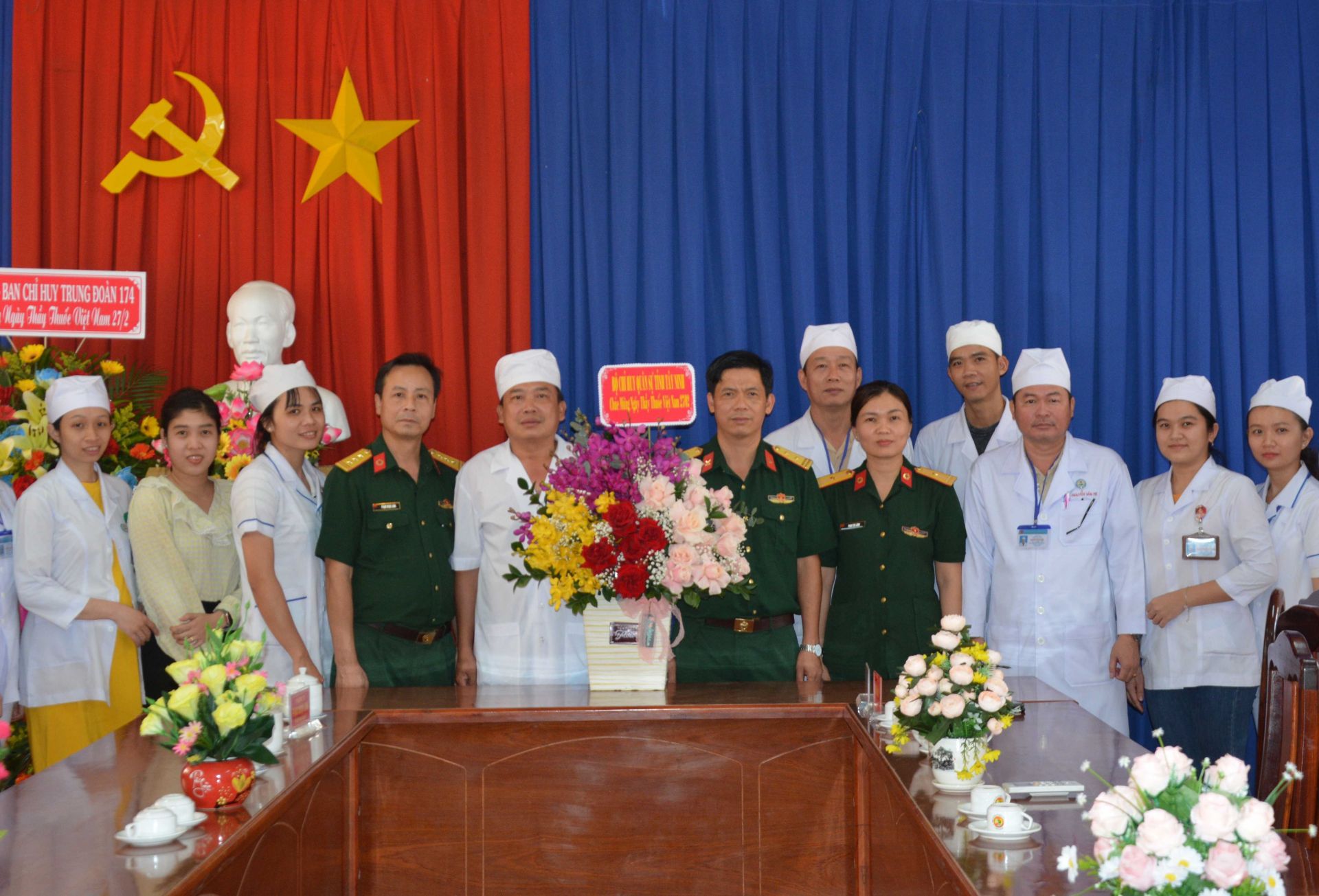 Nhân kỷ niệm 68 năm ngày Thầy thuốc Việt Nam (27.2.1955 - 27.2.2023), chiều 24.2, Trung tá Huỳnh Minh Ngoan- Chủ nhiệm Hậu cần Bộ CHQS tỉnh cùng thủ trưởng các cơ quan Bộ CHQS tỉnh đến thăm, chúc mừng cán bộ, thầy thuốc, nhân viên, chiến sĩ Trung tâm Y tế quân - dân y.