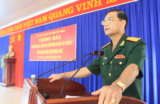 Trước tình hình dịch bệnh Covid-19 diễn biến phức tạp, chiều 28.2, Đại tá Ngô Thành Đồng - Chỉ huy trưởng Bộ CHQS tỉnh Tây Ninh đến tuyên truyền phòng chống dịch bệnh cho cán bộ và chiến sĩ mới tại Trường Quân sự tỉnh.
